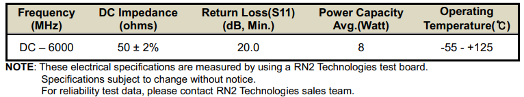RN2 S1206N是8W终端,在不同温度下具有高功率容量和稳定的性能。 AlN,高电导率金属导体(Ag)和金(Au)镀层使RN2 S1206N具有低回波损耗,并提高了热稳定性和电的耐久性。
