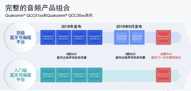 3月26日上午10点,高通举办了语音与音乐业务线上媒体沟通会,正式发布新一代蓝牙音频SoC,包括面向旗舰产品的QCC514x系列和面向中低端市场的QCC304x系列,两款新品都是专门为TWS真无线耳机和耳戴式音频设备打造的,以下是我爱音频网的现场报道。