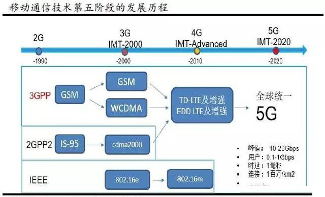 移动通信技术可以说从无线电通信发明之日就产生了,现代移动通信技术的发展始于上世纪20年代,大致经历了五个发展阶段。第五阶段从上世纪80年代中期开始。这是数码移动通信系统发展和成熟时期。该阶段可以再分为2G、2.5G、3G、4G、5G等。移动通信每十年出现新一代技术,不断引入创新技术,推动整体性能快速提升,随着4G已进入规模商用,面向2020年及未来的5G已成为全球业界的研发重点。