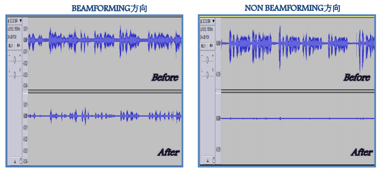 波束形成(Beamforming)是一种利用多组麦克风之间的相位差,来减少标的方向以外的声音的技术,不但能减少环境噪音,还能提升标的声的清晰度。